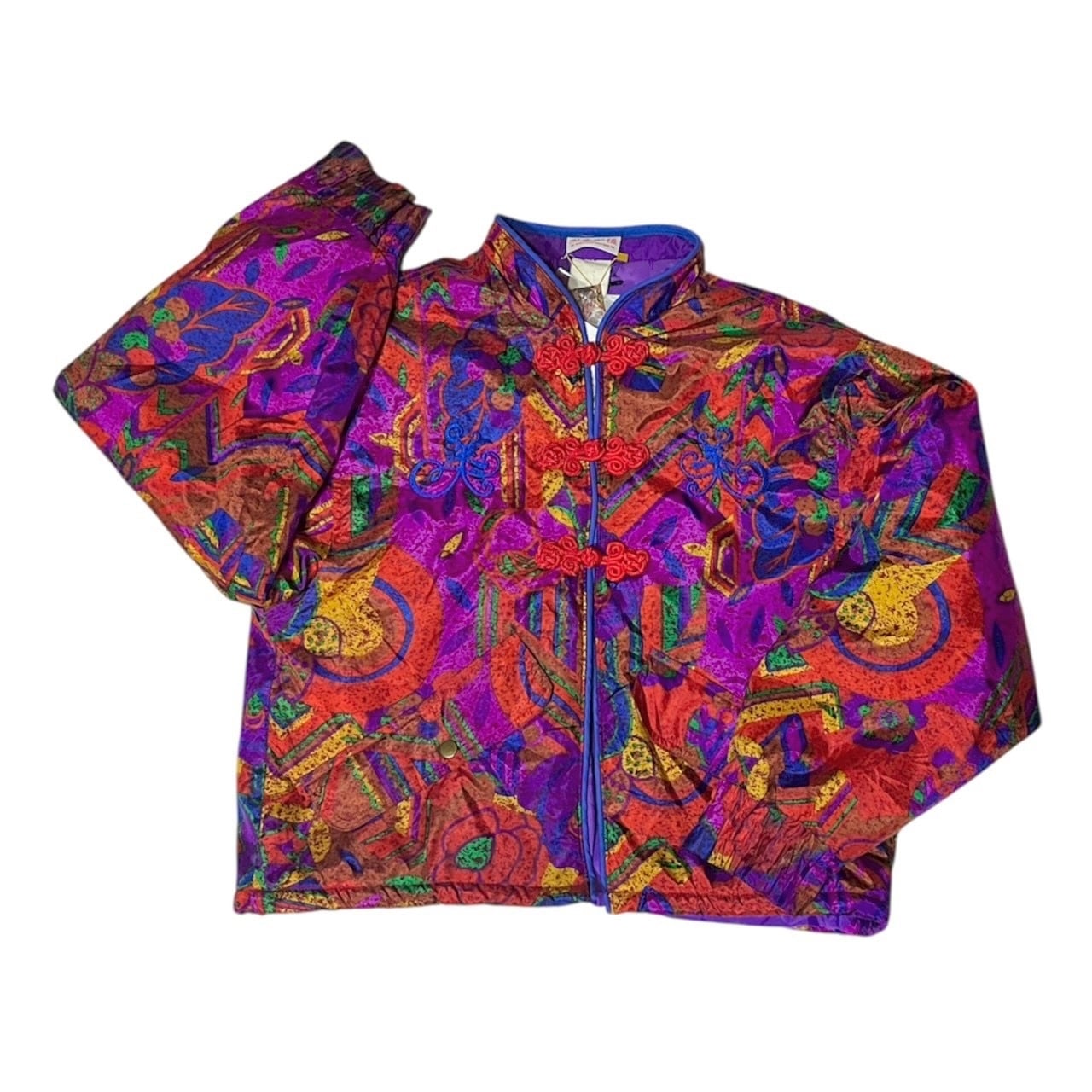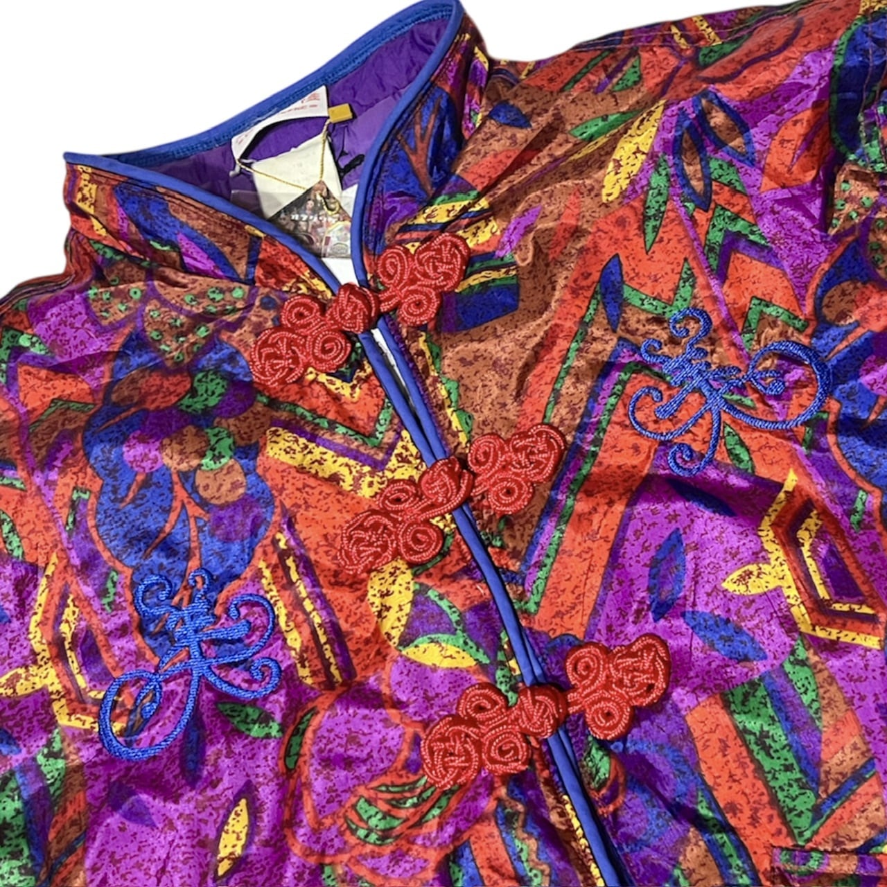 美柄チャイナロング丈長袖ナイロンジャケット ( Purple )