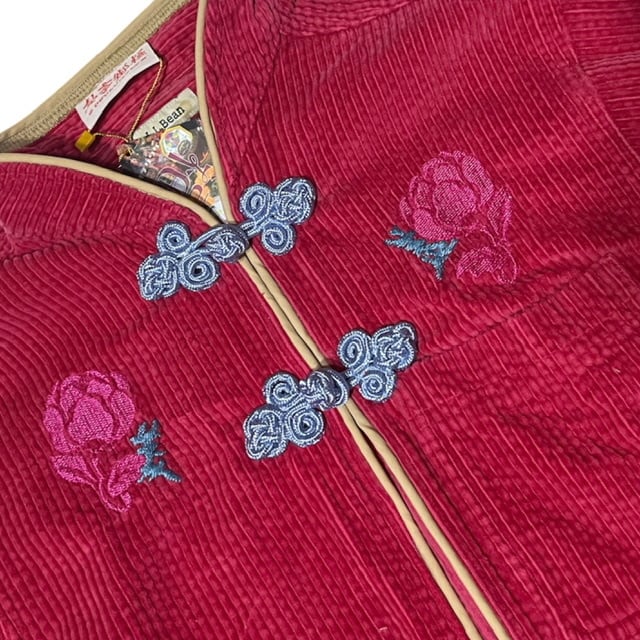 花柄チャイナショート丈長袖コーデュロイシャツ ( Light Red )