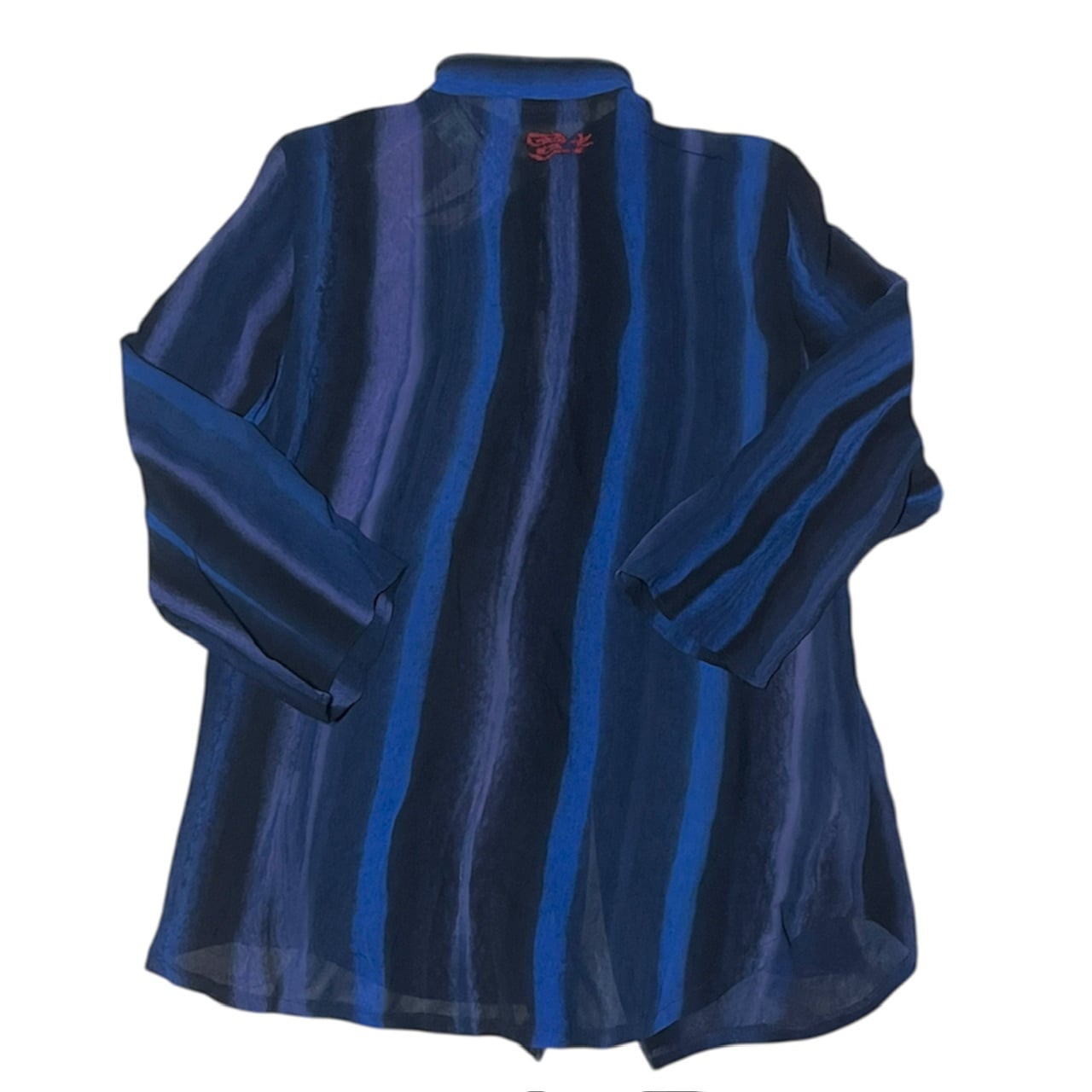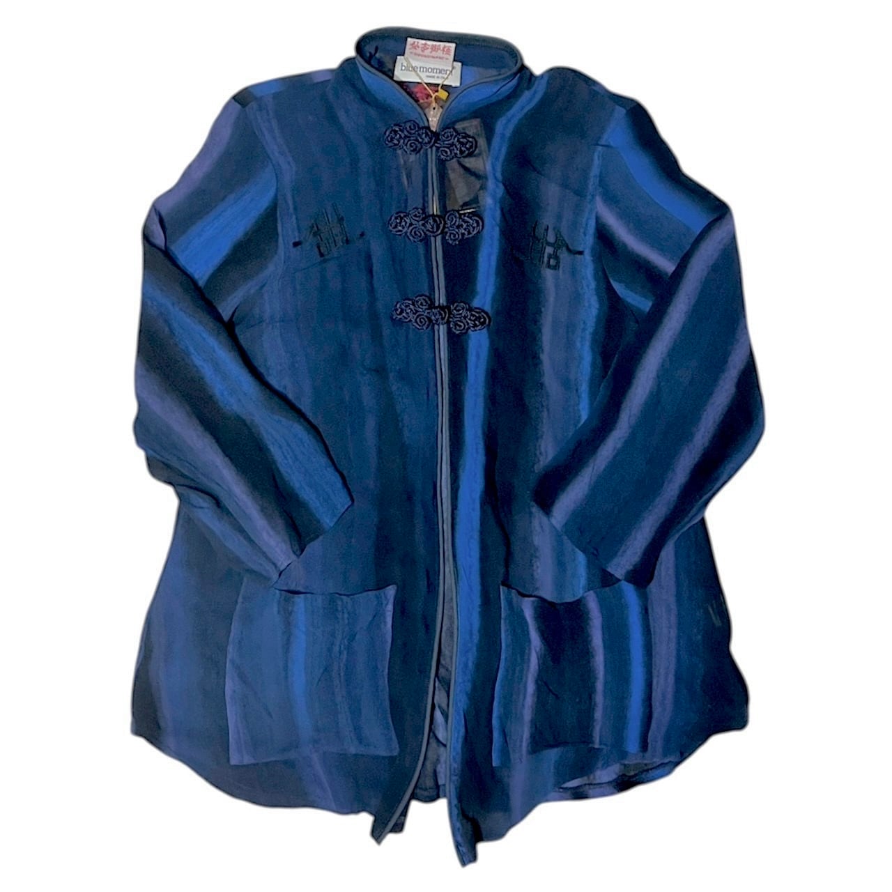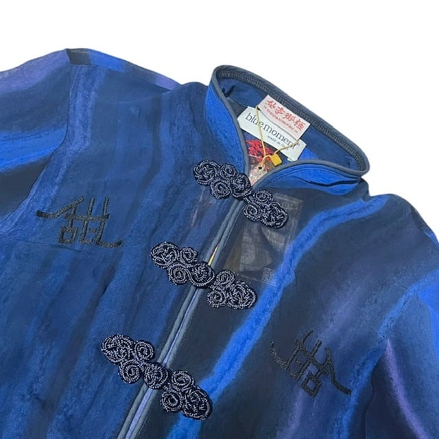 甜柄チャイナロング丈長袖シャツ ( Navy Blue )