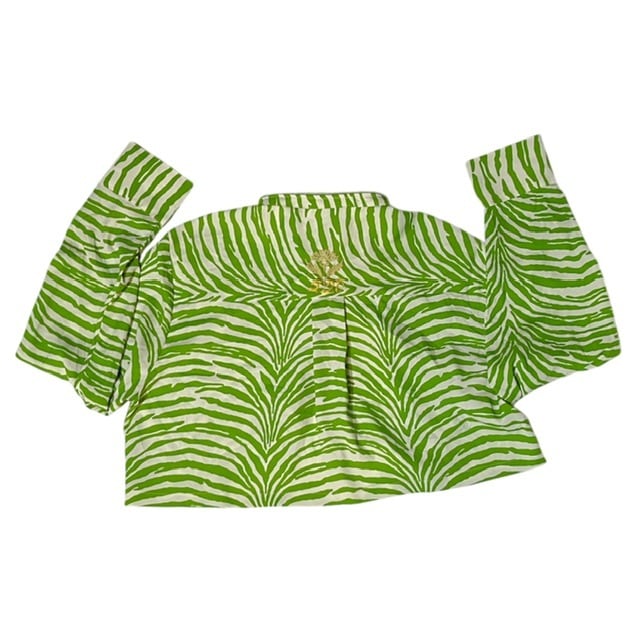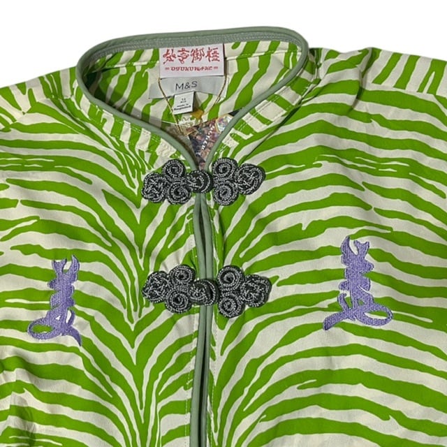 美柄チャイナショート丈長袖シャツ ( Yellow green )