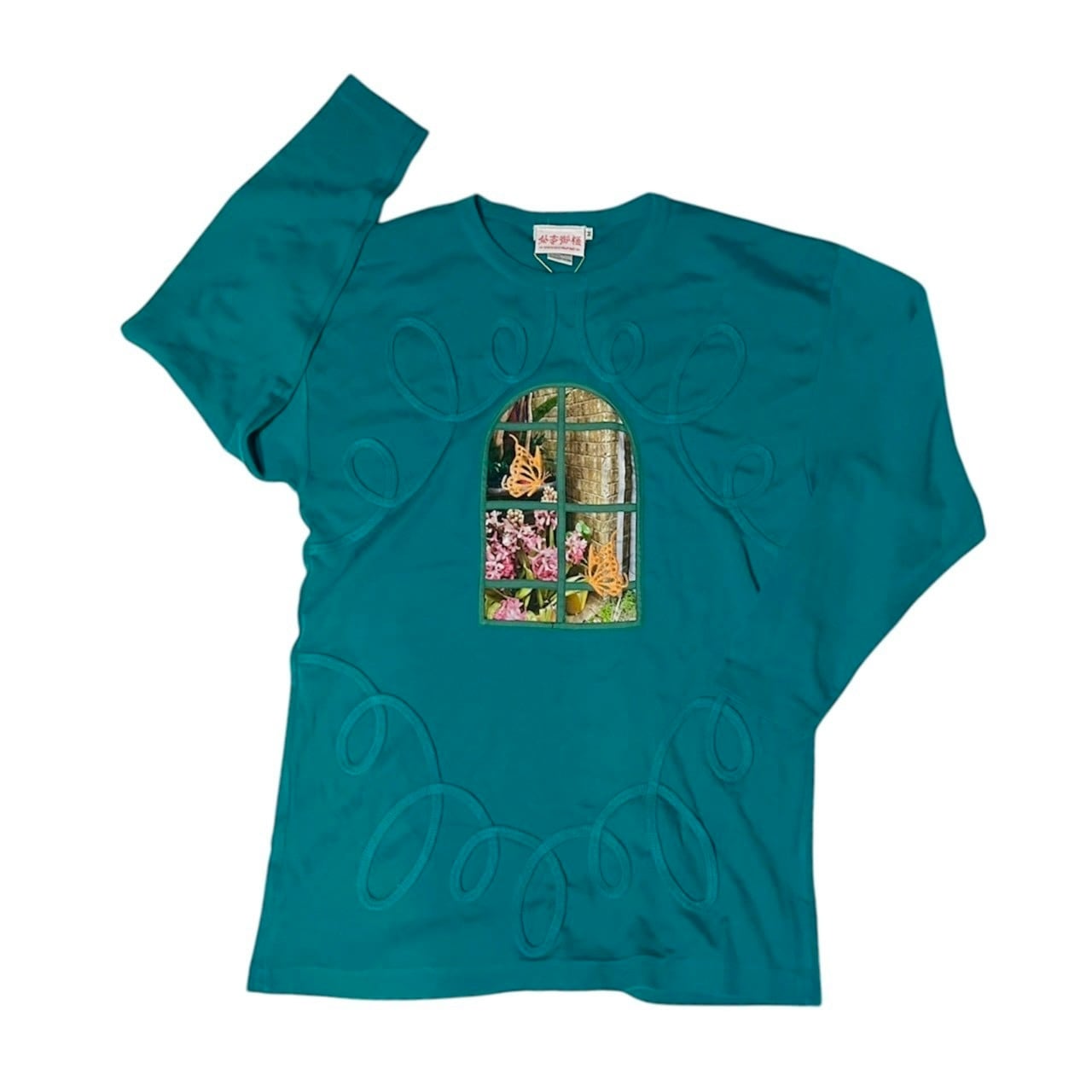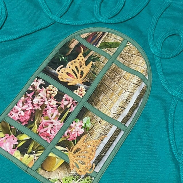 インクジェットプリント+蝶の刺繍入り。