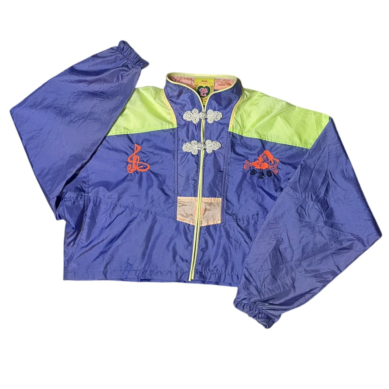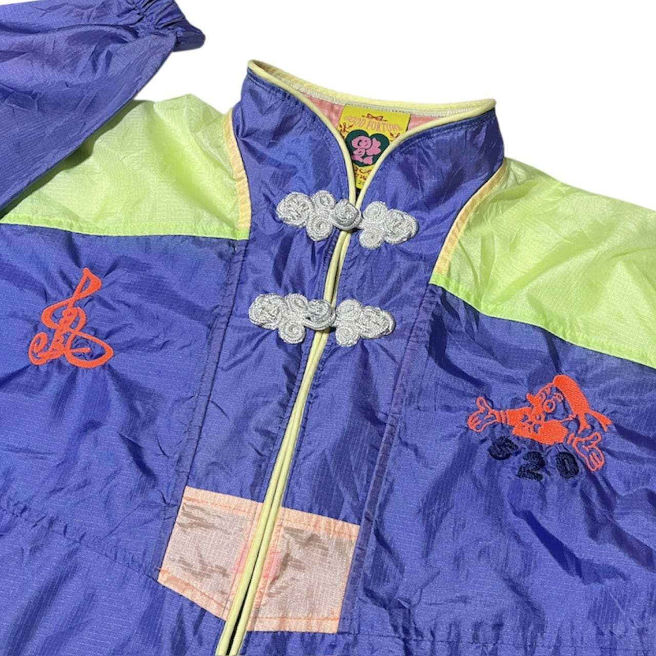 謎のキャラ柄チャイナショート丈シャカシャカジャケット( Smoke Blue )